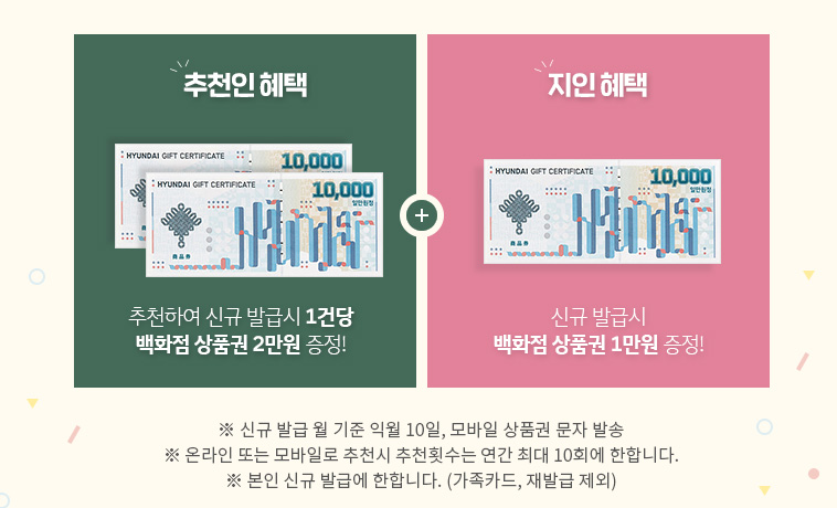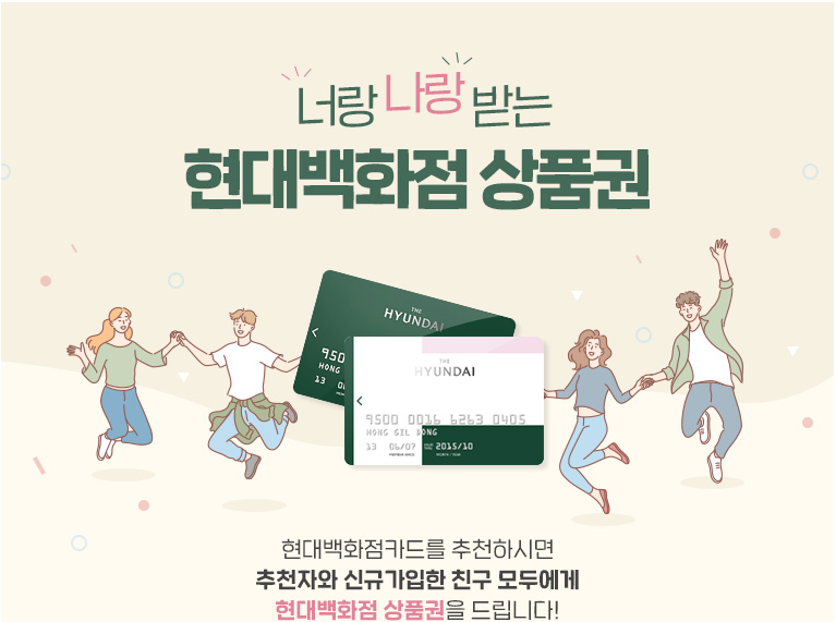 현대백화점카드를 추천인코드로 가입하시면 백화점 상품권 1만원 증정됩니다!
